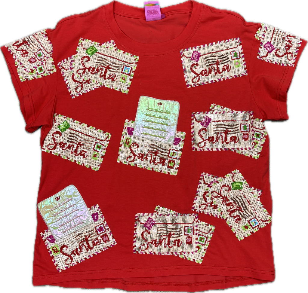 Celebrate the holiday spirit in style with the Queen Of Sparkles: Red Letters to Santa Tee. This festive shirt combines comfort with a playful design, perfect for spreading Christmas cheer. Its vibrant red captures attention, making it an ideal choice for holiday gatherings or casual winter outings. Embrace your inner sparkle and make a statement this season with a tee thatโ€™s as fun as it is festive.
