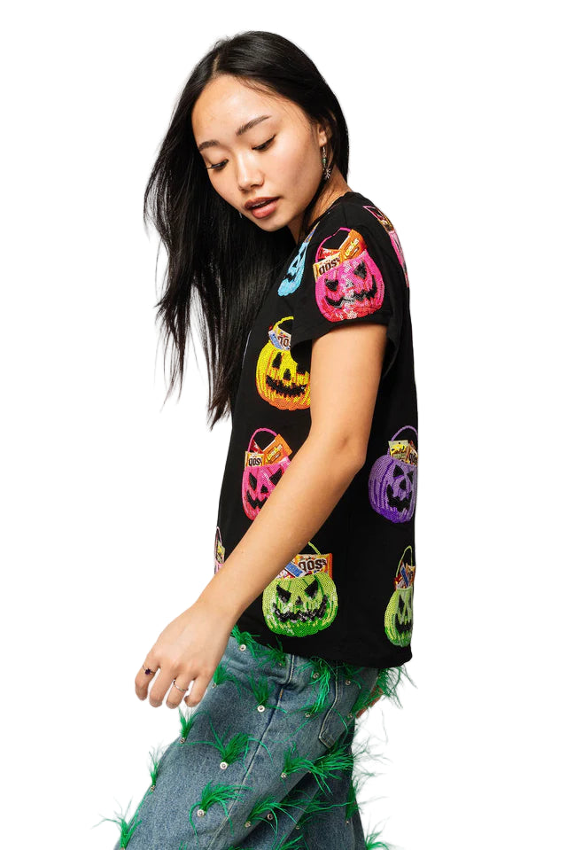 Black Multi Candy In Halloween Baskets Tee