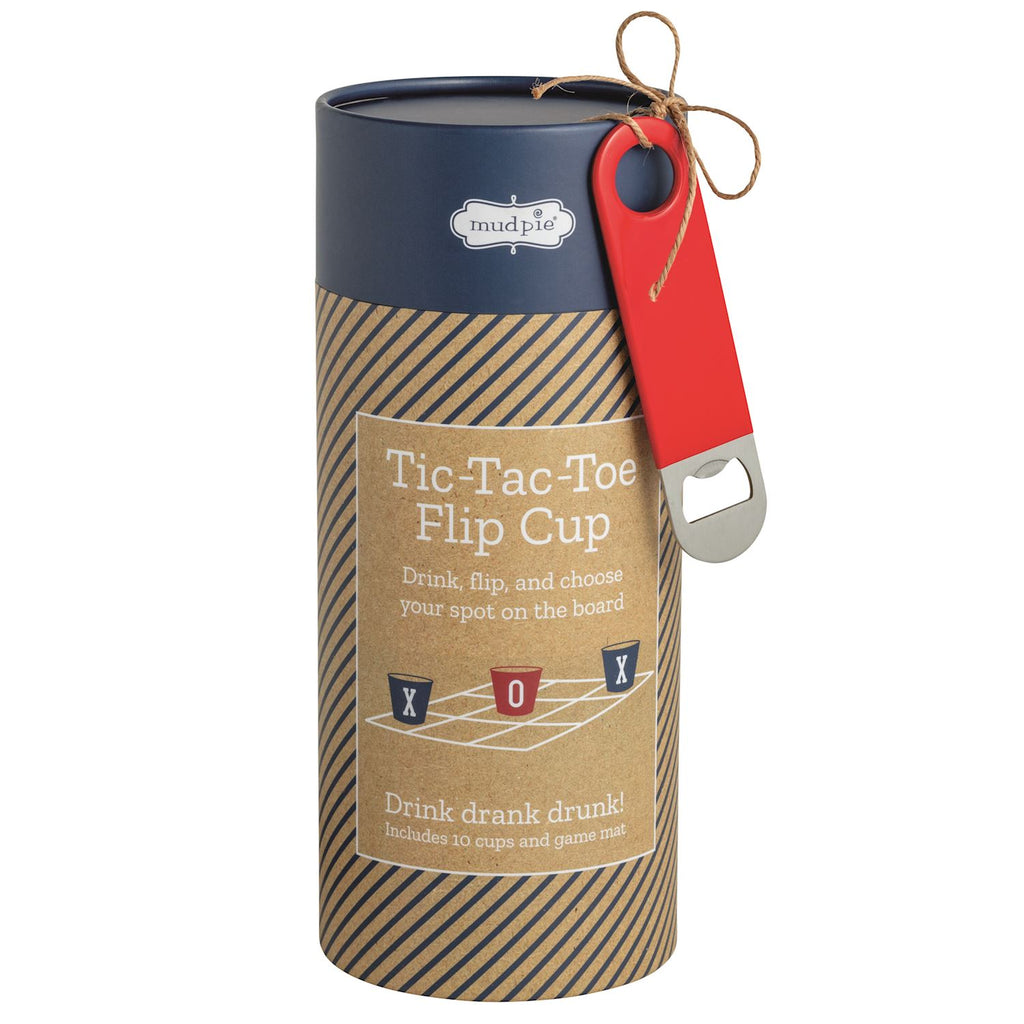 The classic game of flip cup with a tic-tac-toe twist! Comes with game mat, cups and bottle opener.