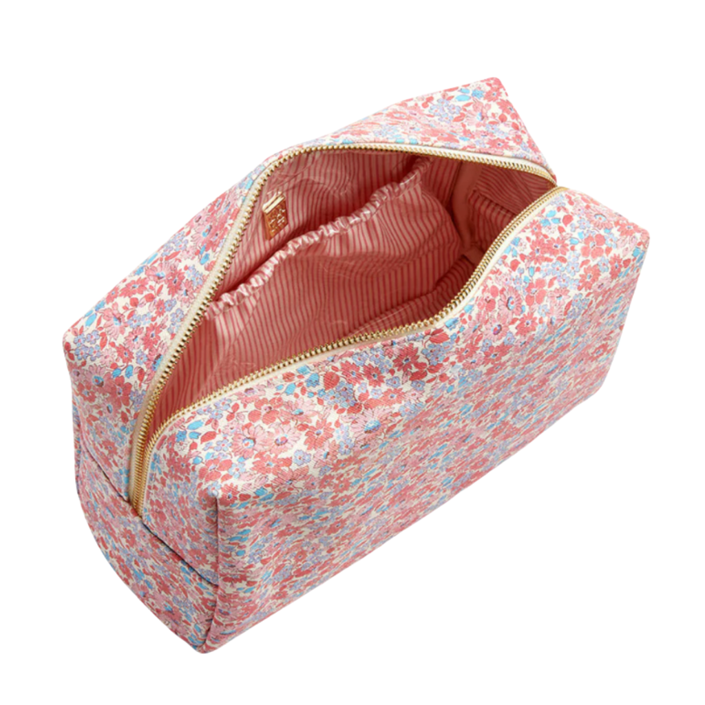 Perfect for Everyday use! This ultimate large, soft, lightweight zippered pouch is ideal for toiletries, cosmetics and everything in between. This style is designed to stand on its own and has an interior pocket for smaller needs. Both functional and beautiful, this would be a great addition to any TRVL set and don't forget, it is wipeable inside and out.